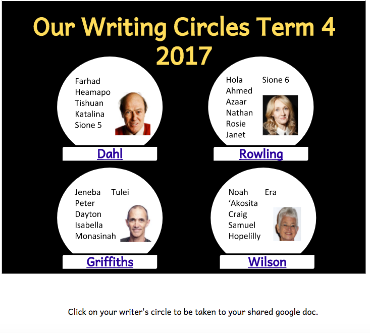 Here is how I have set up my Writer's Circle Docs. They all link back to the site and students can also access them directly from their own Drive folders.